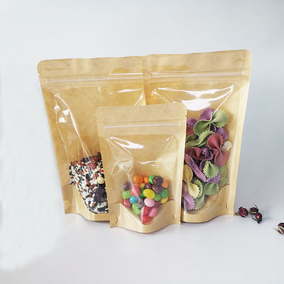 Ματ Επεξεργασία Ζιπ Θερμική Σφραγίδα Kraft Stand Up Τσάντες με παράθυρο ψηφιακή εκτύπωση Για σακούλες συσκευασίας τροφίμων