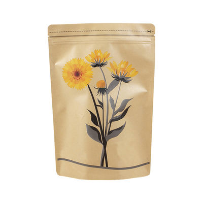 Αδιάβροχες πλαστικές λαμινάντες επανακλειδώσιμες σφραγισμένες καφέ σακούλες Kraft με παράθυρο για αποθήκευση τσαγιού, κόκκων καφέ, συσκευασίας τροφίμων